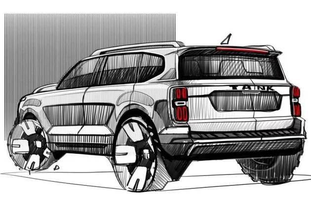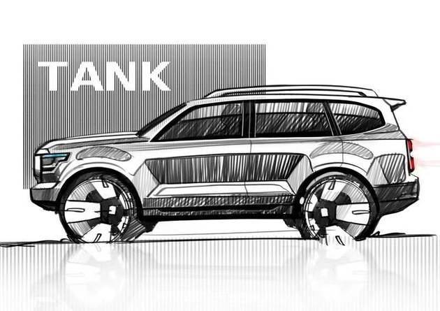 外观方面,从手绘稿可以看出,坦克600采用了有别于