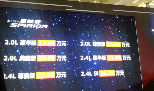 12月7日,东风Honda主流中高级旗舰车型全新思铂睿在北京上市。全新思铂睿全系共推出2个排量各3个版本,共计6个级别的车型,其中:2.0L LXi 豪华版、2.0L EXi 尊贵版和2.0L EXi-L典藏版售价分别为17.98万元、19.58万元、20.58万元,2.4L VTi豪华版、2.4L VTi-S尊贵版和2.4L Si售价分别为21.98万元、22.98万元、26.78万元,新车已开始到店销售。