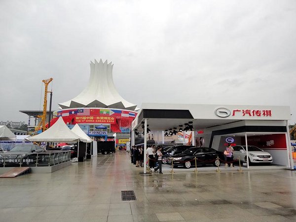 (图1:第11届中国-东盟博览会现场,右侧为广汽传祺展台)