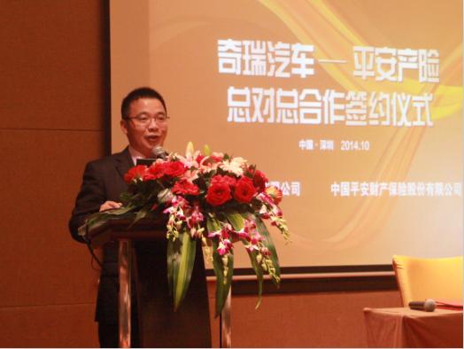 平安产险总经理助理王国平表示“平安产险此次与奇瑞汽车以总对总的模式在汽车服务领域进行全方位的深入合作,双方必将获得更大的发展机遇。未来,在双方的共同努力下,平安产险将竭力为用户提供专业化的车险服务及其他增值服务,提升客户体验,致力打造客户首选品牌!”