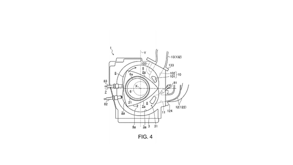 The patent goes on to say the engine will have a tri-angle rotor and new fuel injectors which are located closer to the combustion chamber. This change will help to improve fuel efficiency which was a bit of an issue with the company's last rotary engine.
