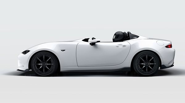 马自达将在SEMA改装车展上发布两款 MX-5 Miata概念车。其中一款MX-5 Speedster在一年前就曾经亮相过,这款Speedster Evolution重量降低了100磅(约合45公斤)。这两款车都拿掉了风挡和敞篷车顶,可以更真实的感受完全敞篷行驶的感觉。白色车身涂装的 Evolution重量不到1吨,比量产版MX-5还轻了350磅(约合158.9公斤)。而另一款MX-5 RF Kuro概念车基于MX-5 RF,而“Kuro”一词取自日语的“charcoal”(木炭),它的车身也采用独特的半哑光炭黑色涂装。该车配备17x7.5英寸RAYS锻造轮圈,百路驰Rival G-Force轮胎。而它的可调悬挂则来自MX-5 Cup赛车。这两款概念车的设计和制造由马自达在加州Irvine的设计中心负责完成。