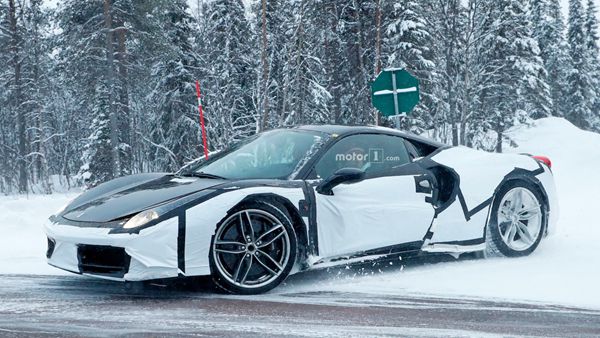 The exterior wears a heavy dose of camouflage, but retains the shape of the original 458 and 488. The front, side, and rear quarter panels are all covered up, but the rear, roof, and hood go mostly exposed, leading us to believe that the exterior will only get minor updates. Under the hood is where most of the actual updates will happen.