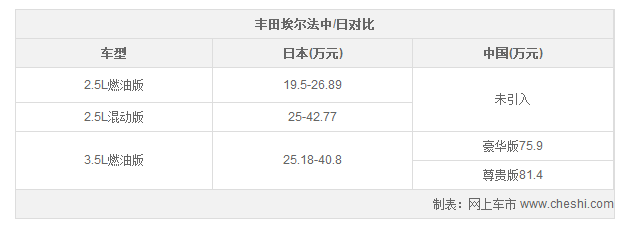 具体到车型来看,埃尔法在国内推出了3.5L排量两款车型,入门版售价75.9万元。而在日本同排量3.5L车型起售价为25.27万元(4,145,237日元),相差50多万元之多。
