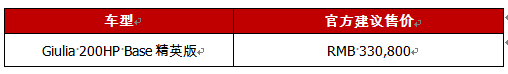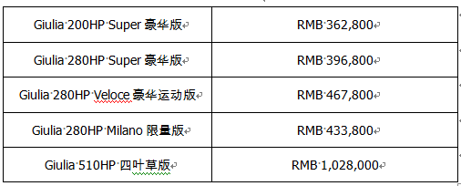 阿尔法·罗密欧全新进口豪华运动轿车Giulia的官方建议售价为: