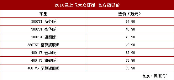 日前,我们从上汽大众官方获悉,2018款大众辉昂车型正式上市。新车相比现款车型在配置方面有所升级,共包含两款动力共计7款车型,售价区间为34.90-65.90万元。具体售价详见下表: