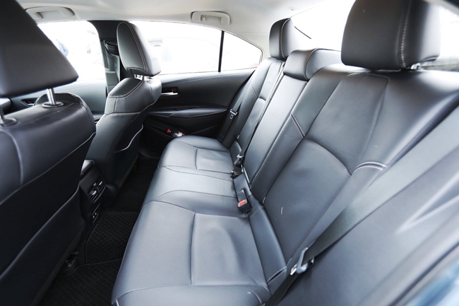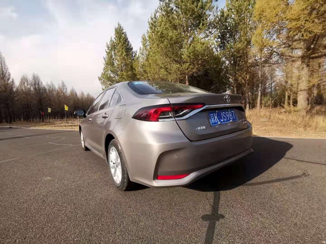 新一代卡罗拉的的尾部设计层次感丰富,采用LED尾灯组和镀铬装饰条,混动版车型与燃油版略有不同,主要区别在蓝色元素LOGO以及尾部HYBRID标识。