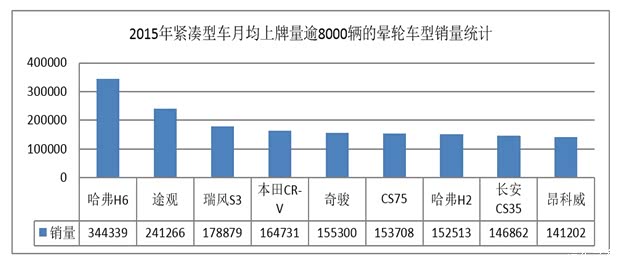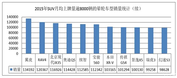 1/8 的晕轮车型占去了超过一半的江山。途观、CR-V是合资车型的代表,哈弗H6、瑞风S3是自主车型的典范。虽然SUV还是一个正处于发育期的蛋糕,但是贫 富两极分化的趋势已异常显著。看着上面三份图表,我们完全可以想见,在未来的日子里,位于销量排行榜中下游的车型将会面临怎样血腥的市场竞争。