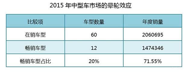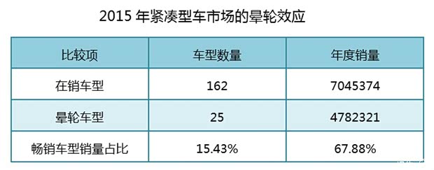 如 果将SUV的晕轮效应看作是贫富两极分化,紧凑型车就只能用“就是朱门酒肉臭、路有冻死骨”来形容了。1/7的晕轮车型——以朗逸、轩逸、速腾为首的一干 明星车型,占据着近70%的市场份额。如果换算成销量,那就是:每款晕轮车型可以享受的市场肥甘高达15941辆/月,而每款非晕轮车型用来果腹的市场销 量只有1377辆/月,不足晕轮车型的1/11。