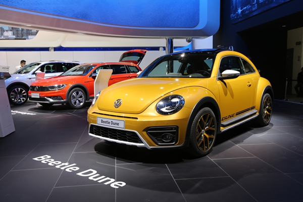 第十四届北京国际车展在中国国际展览中心新馆盛大开幕。6款大众进口汽车重磅车型亮相北京车展,其中包括以创新引领豪华的蔚揽四驱旅行车,以不羁创造欢乐的甲壳虫沙丘越野版,德国工艺匠心杰作辉腾以及时代精英座驾途锐R-Line,将革新与前卫写进基因的Golf GTE与将会登陆中国市场的New Tiguan Sport R-Line。在W4展馆的大众汽车展台上,大众进口汽车的车型以德国原装进口的卓越品质,为中国消费者带来车坛潮流与科技前沿的完美视觉盛宴。
