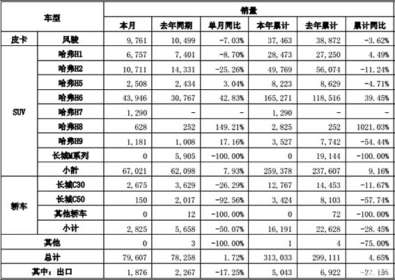 长城汽车4月销量,SUV占到了总销量的84.19%