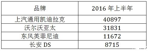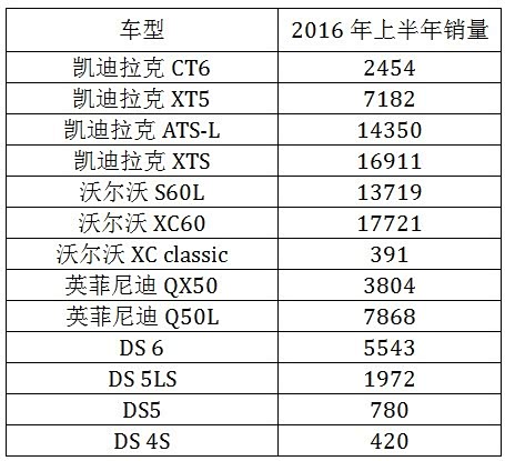 其他豪华品牌国产车型上半年销量一览