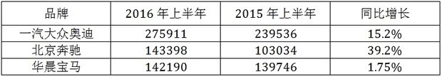从上表中可以看到,凭借接近40%的强劲增速,北京奔驰在今年上半年,累计超过华晨宝马1208台,这也是十年来奔驰的国产车型首次在半年销量上超过华晨宝马。