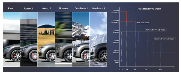 但是拥有跑车家族的体型,并不意味着Levante就只能“贴地而行”。Levante的车身可以根据行驶道路的不同而进行调节,包括5个行驶高度和1个驻车高度。因此无论是平缓的环山公路,还是崎岖的山野泥径,Levante都可以随时变换车身高度以适应道路需求。在停车后,Levante还会自动降低车身,进入最低的驻车状态,确保上下车和提取行李时的最大便捷性。