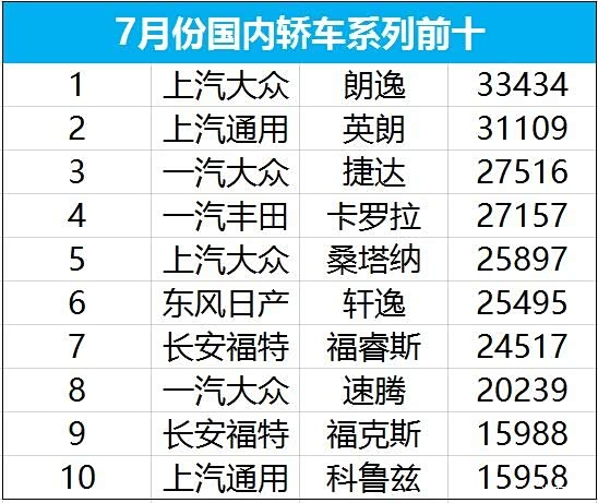 看看榜单就知道了,7月份轿车销量前十车型中,位列前三的朗逸、英朗、捷达都是特供车型(此处再啰嗦一下,和老英朗不同,新英朗是由泛亚研发的全新车型,只在中国发售)。除此之外,后面还有上汽大众的桑塔纳以及长安福特的福睿斯,轿车前十车型中,针对中国市场的特供车占了一半。