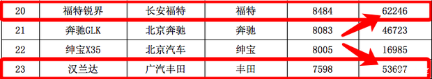 第四,从细分市场分析,中型7座SUV细分市场依旧是“蓝海”,但缺乏竞争力强的产品。数据显示,今年前7个月,汉兰达和锐界共销售11.59万辆(汉兰达5.37万、锐界6.22万辆)。