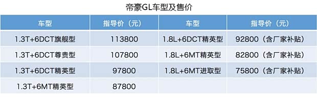从帝豪车系的家族来看,帝豪GL与帝豪,帝豪GS,帝豪RS,帝豪EV构成了丰富的产品线。并且每个车型的定位与目标客户也存在一定差异,不会形成内部竞争。