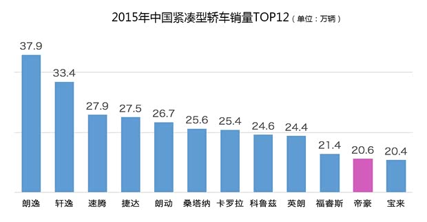 虽 然中国品牌紧凑型车的数量很多。但是与合资汽车相比,在单一车型的销量上还是差了一些。从2015年中国紧凑型车的销量数据上看,前10名全部是合资品 牌。中国品牌吉利帝豪年销量20.6万辆,排名第11位。销量第一的是朗逸,全年总销量37.9万辆,平均月销量3.15万辆。其实帝豪的数据也不差,平均月的销量也达到1.71万辆了。由此可见,中国紧凑型车市场中,合资品牌依然是最强势的,一定程度上确实处于垄断地位。此外,紧凑型车的市场相比其它车型也真是太大了,给了所有厂商自由竞争的机会。