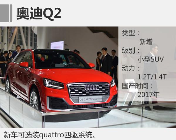 待选车型中最有争议的就属刚刚在德国Ingolstadt工厂下线的全新奥迪Q2。该款车型是一款定位低于Q3的小型SUV,目前已确定全新Q2未来会在华实现国产化生产。有消息称上汽大众和奥迪合资公司如果成立的话,首款车将在明年4月推出。而一汽-大众目前已经拥有Q3和Q5两款SUV车型的生产资质,那Q2国产由“上汽大众奥迪”来生产看起来也是合情合理的。
