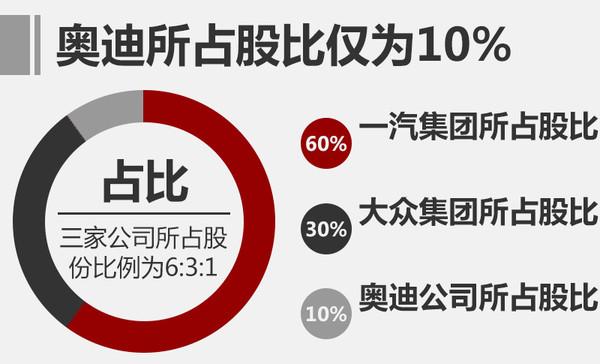 虽然奥迪在中国年年是销量老大,但是鲜为人知的是奥迪、大众、一汽所占有的公司股比为1:3:6。奥迪占有1成的股份,所分得的利润自然也只有10%。多年前三方曾约定将各自持有的股份进行变更,奥迪、大众、一汽分别占股19%、30%和51%,这样一来奥迪每年在华可多分得18亿元的利润。而此后受到大众“排气门”事件的影响,变更股比的意愿也变得遥遥无期了,奥迪公司在华获得的利润也越来越少。