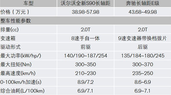 接下来,奔驰E系在变速箱、最大扭矩、最高速度、百米加速上略胜一筹,同时,S90长轴距版在最大功率上扳回一局。