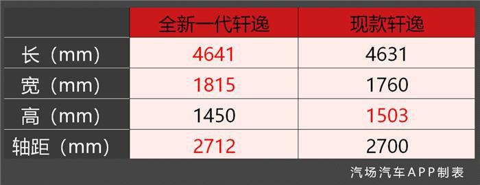 车身尺寸的升级是新车的一大优化点,全新一代轩逸的长宽高分别达到了4641/1815/1450mm,轴距为2712mm。