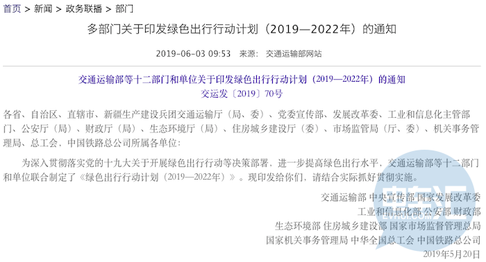交通运输部等十二部门和单位印发了《关于印发绿色出行行动计划(2019—2022年)的通知》,通知指出,推进实施差别化交通需求管理。降低小汽车使用强度。研究制定公众参与感强、富有吸引力的小汽车停驶相关政策。鼓励对自愿停驶的车主提供配套优惠措施,探索建立小汽车长时间停驶与机动车保险优惠减免相挂钩等制度。在供需失衡、交通压力大的区域或者路段,探索实施小汽车分区域、分时段、分路段通行管控措施,引导降低小汽车出行总量。加快换乘枢纽停车场建设,引导私人小客车换乘公共交通出行。加强停车治理。加强交通出行信息引导,高密度布设交通出行动态信息板等可视化智能引导标识,建设多元化、全方位的综合交通枢纽、进出城市交通、停车、充电设施等信息引导系统。合理规划建设停车设施,推广实施分区域、分时段、分标准的差别化停车收费政策。