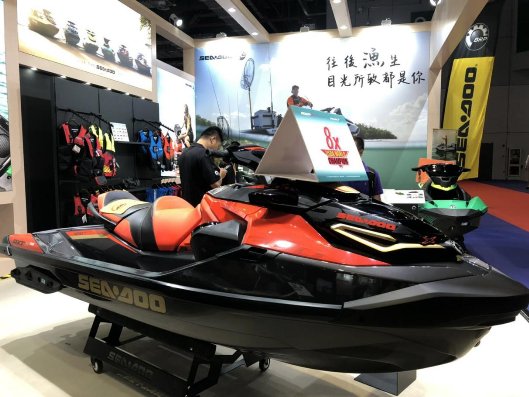 此次游艇展上,Sea-Doo喜度摩托艇展示了4款摩托艇,包括Fish Pro,GTX Limited, RXT-X 300和Spark Trixx。
