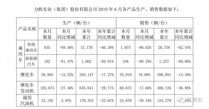 根据力帆股份发布的6月产销数据显示,今年上半年,力帆传统乘用车累计销量约2.08万辆,同比下滑62.55%;新能源汽车累计销量1257辆,同比下滑60.66%。