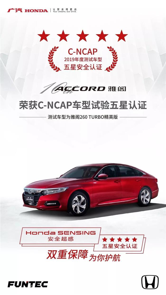 第十代雅阁(ACCORD)荣获C-NCAP 五星安全认证