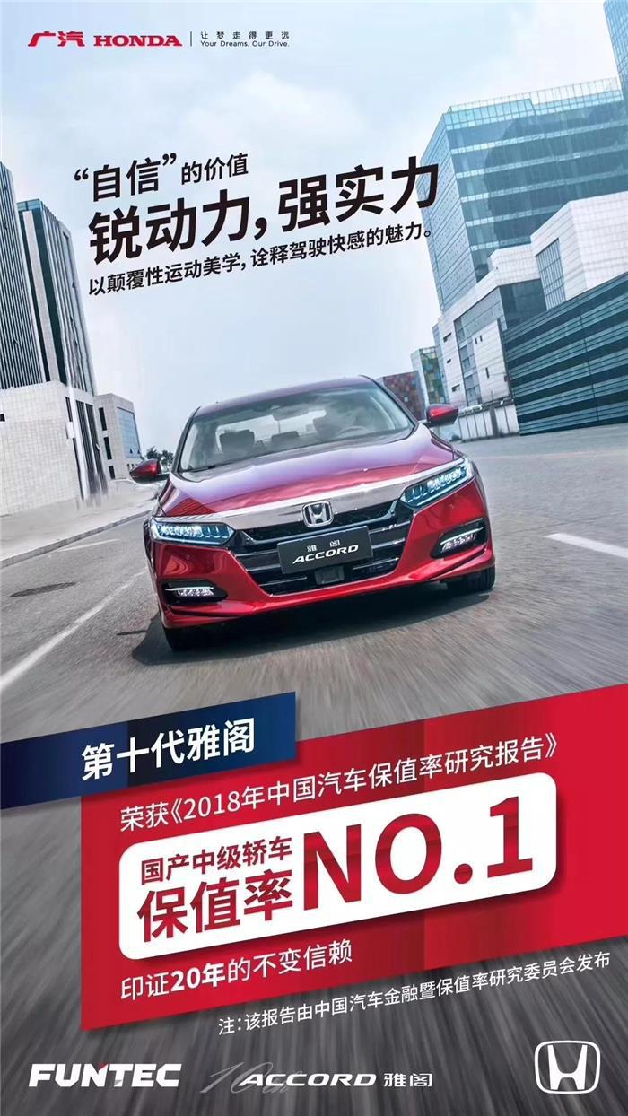 第十代雅阁(ACCORD)荣获国产中级轿车保值率第一名