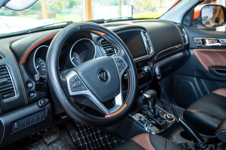 现场展示的这辆拓陆者E7大皮卡,于今年3月15日上市,是拓陆者皮卡家族中的中高端产品。整车看上去粗犷豪放、强壮硬朗,线条棱角分明。金色镀铬格栅匹配熏黑大灯尽显低调奢华,LED日间行车灯、大轮眉、运动型轮毂、宽大的侧踏板等等都给人一种威风凛凛的气势。
