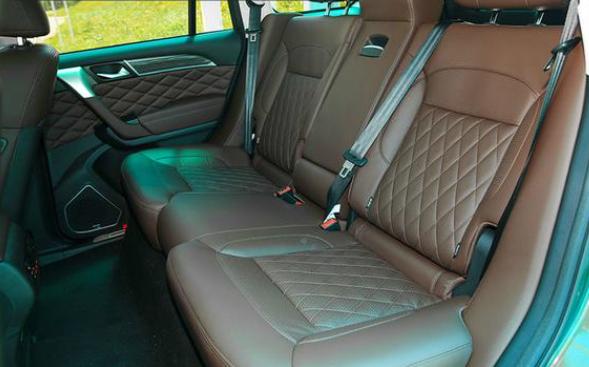 此外,新车的坐垫和靠背上都采用了真皮打孔的全新菱形纹路,由于座椅材质是软性填充物,所以坐起来舒适性没有问题。此次疆哥试驾的是5座版本的,如果是7座车型,那么在做工用料、座椅宽度、坐垫长度就会稍微缩水,所以如果不是7座刚需,那还是首选5座为好。