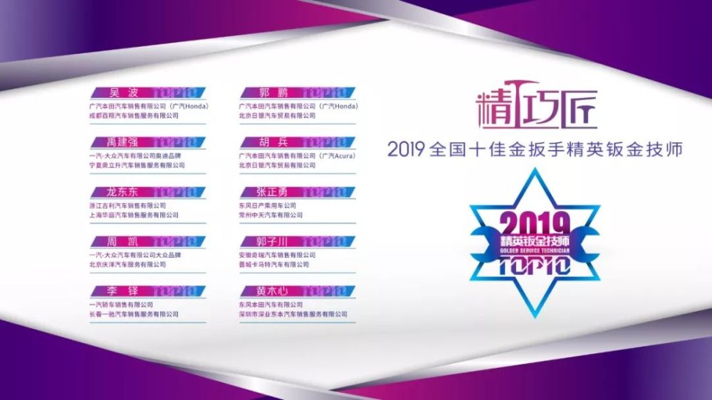 2019全国十佳金扳手“精工巧匠”精英钣金技师获奖名单
