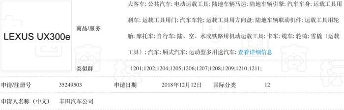 此前,丰田在中国注册了“UX300e”的商标,这有望就是UX纯电动汽车的型号。这样雷克萨斯UX将实现UX200、UX260h和UX300e,从燃油、油电混动到纯电动的动力布局。
