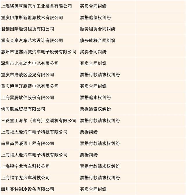 根据天眼查和中国裁判文书网的公开信息,我们梳理了今年以来涉及“重庆理想智造”的裁定书,纠纷对象包括17家企业,类型主要分为两大类:一类是买卖合同纠纷,一类是票据纠纷。