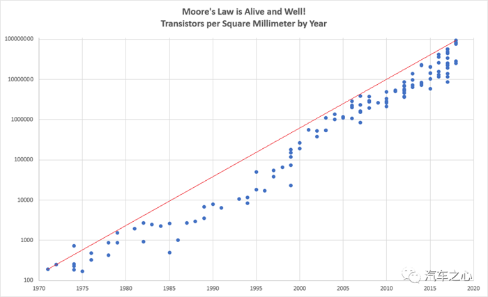 自动驾驶汽车的摩尔定律跟计算机行业几乎一样——性能每 16 个月翻一番。