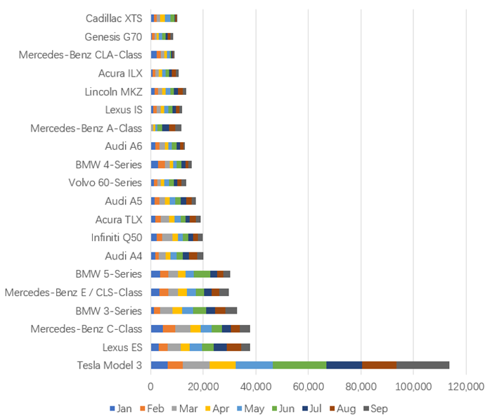 图3 现有Model 3在豪华(入门&中级)细分市场的表现