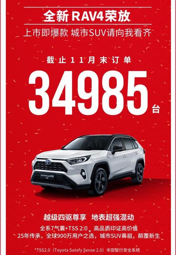 作为城市SUV的开山鼻祖车型,换代升级的全新RAV4荣放以超强的产品力,在国内城市SUV市场中再次树立起B级车型标杆。新车上市官方指导价格为17.48-25.88万元,全系提供了2.0L自然吸气以及2.5L混合动力两种不同的动力选择,配合四驱系统的搭载,满足了不同消费者对车辆配置的需求。特别是在产品安全性方面,全新RAV4荣放全系标配了带有膝部气囊的7 气囊全车保护、胎压监测、远近光一体LED灯组、主被动安全、车道偏离预警等全方位的安全防护,进一步提升了市场竞争优势。
