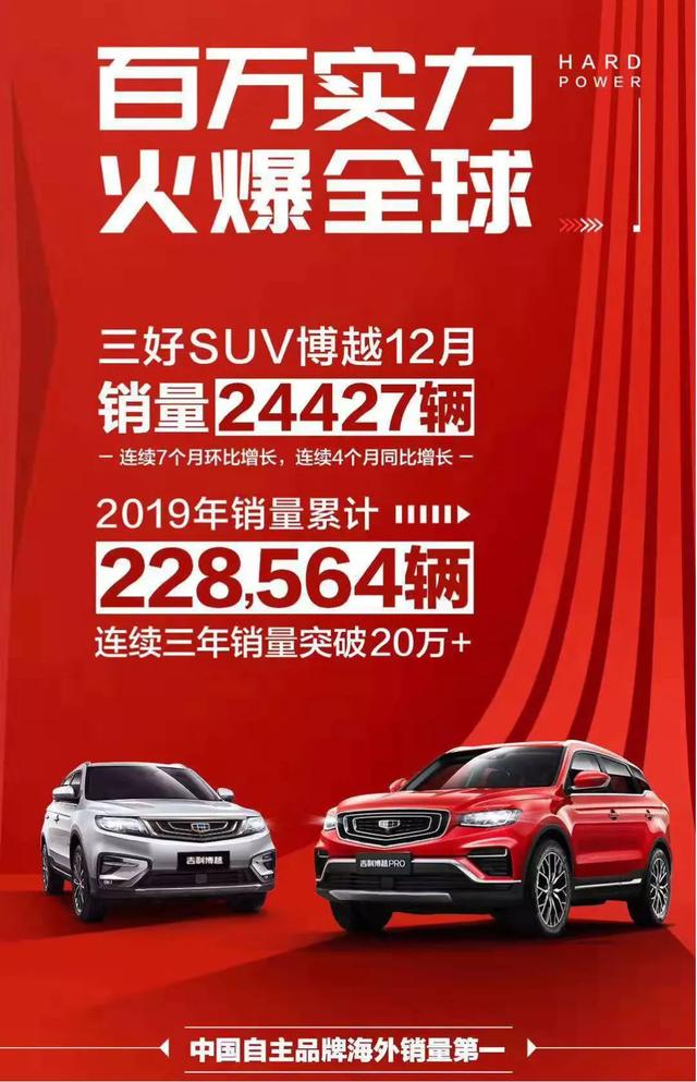 但就是在2019年车市一片阴霾之时,博越却开启了"开挂模式",带领中国品牌赶超合资。