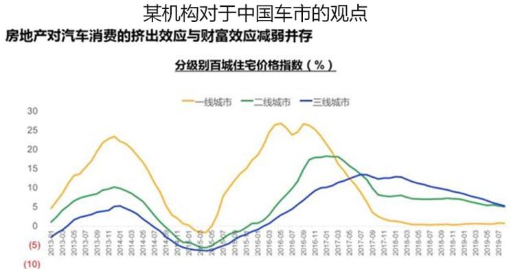 首先我们通过下方某权威机构的公开文件,看看“高房价造成车市下跌”的观点是如何得来:从2016年底到2018年底,这一轮房地产的增长,对汽车消费产生了挤出效应。对三四线城市的消费者来说,原来20-30万可以买一套不错的房子,现在已经涨到100平方房子差不多要60-70万,首付和买一辆中国品牌汽车的价钱相当,如果全部财产或者负债投入到房子上,是没有能力购买汽车的。对于一线城市的消费者来说,虽然相对房子来说汽车的首付不是大问题,但是换购和增购的需求更多。