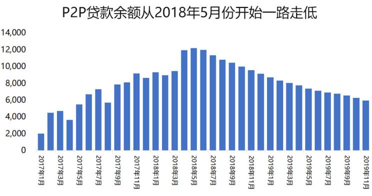 与宏观领域的去杠杆相比,微观领域的去杠杆则表现得更加凶猛,其具体表现为监管机构对P2P的综合整治。中国互联网金融协会的数据显示,国内P2P贷款余额以2018年5月为分水岭;2018年5月之前,以“点对点”起家最后往往搞成了资金池、自融和非法集资的P2P,贷款余额从2017年1月份的2000亿规模上升至2018年5月的1.2万亿之多。2019年全年,随着P2P爆雷不断,监管机构对P2P的清退也渐成合拢之势。截至2019年11月,P2P贷款余额连续18个月一路下跌至不到6000亿的规模。