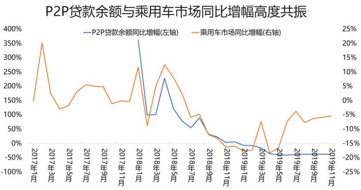 在汽车消费的上行期,很多信用资质不高的人借助P2P资金实现了提前购车,并帮助中国品牌市场占有率节节提升;在本轮汽车下行周期中,微观领域的去杠杆加剧了中国品牌下跌,中国品牌受冲击相较于合资品牌更加明显。数据层面可以发现:P2P贷款余额快速萎缩的时间与乘用车消费下行的时间点基本一致,P2P贷款余额同比增幅和中国乘用车市场月度同比增幅存在高度共振。