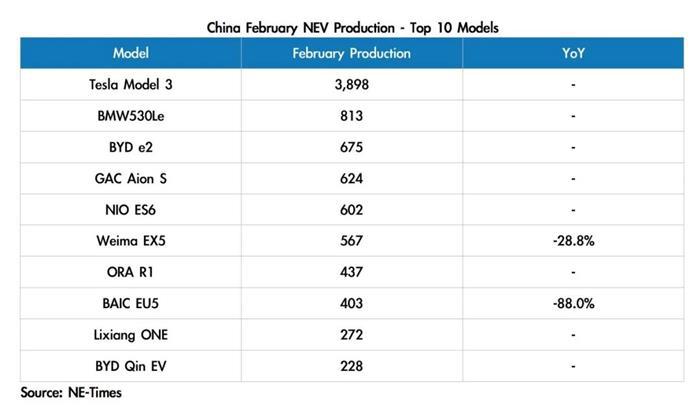 今天,有个国内电动汽车2月产量Top 10的图表在网上热传,数据来源NE-Times。数据显示,除了国产特斯拉Model 3产量接近了4000辆,其他各车型数据都是低于700的,相当惨烈。从网友的评论看,大家普遍认为,特斯拉赢在了高度自动化的生产线,这也是特斯拉的巨大行业优势之一。