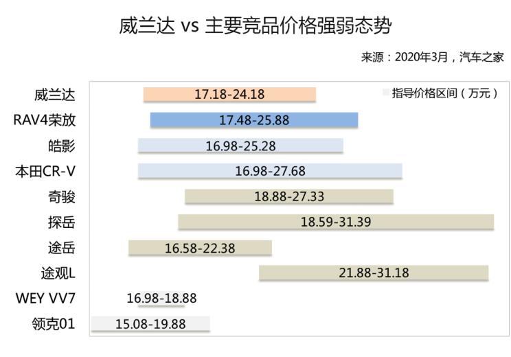 作为广汽丰田旗下首款紧凑型SUV,从品牌、车级及价格等多个维度综合分析看,威兰达的最大对手,都是其兄弟车型RAV4荣放。
