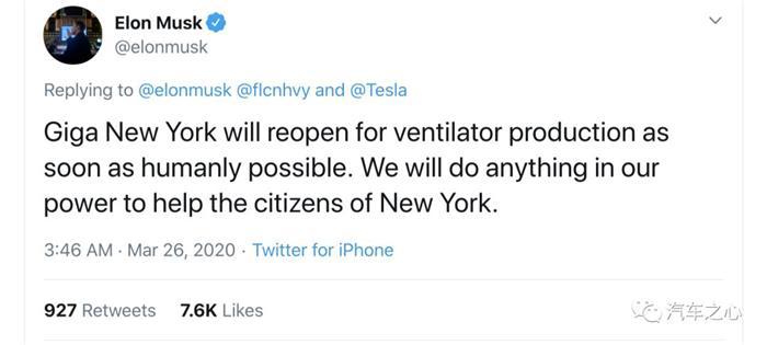 直到一位特斯拉车主点醒马斯克,建议他安排工厂转产极度短缺的呼吸机。