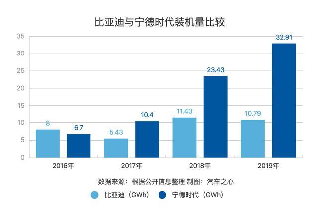 成立于 2011 年的宁德时代,在 2016 年时动力电池的出货量为 6.7GWh,相较比亚迪动力电池出货量的 8GWh,落后 1.3GWh。