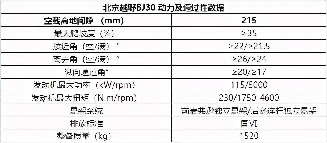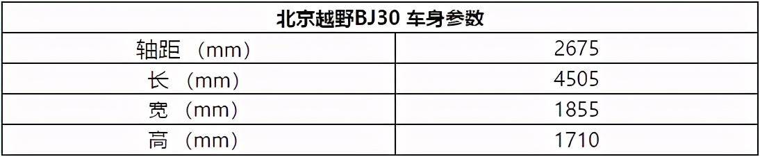 显然,从以上曝光的参数配置来看,在车型尺寸上, BJ30虽然是