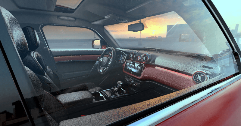 车内内饰同样堪称惊艳,遵循家族化设计理念,强调“外方内圆”、“硬视觉,软触觉”的设计感知,内饰出风口与启动按键形成的五圆孔与外形方孔相呼应,强化了家族式造型特征,而仪表台、门板饰条大量使用皮质包覆,做工精细提升用户触感。