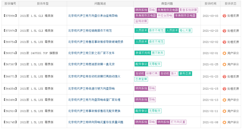 当然,由于第七代伊兰特的上市,现代领动目前已经停产。不过,作为北京现代寄予厚望的一款车型,第七代伊兰特在2020年10月份上市,目前仅仅上市半年左右,但是这款车已经质量问题多发。